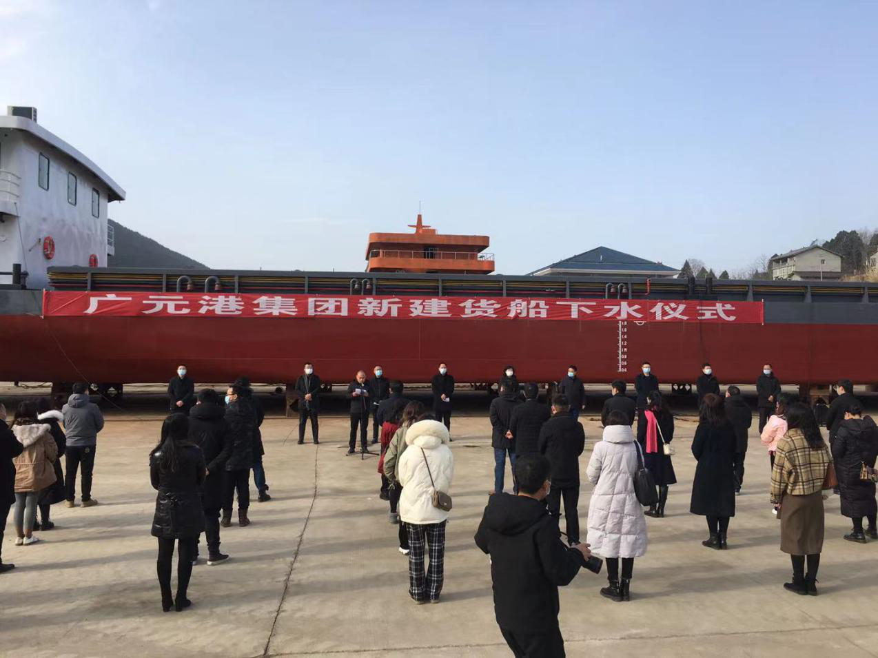 1月25日,市交投廣元港集團新建貨船下水儀式在昭化區紅巖鎮舉行,新建的“興川江”8號、9號兩艘千噸級多用途貨船順利下水。市交通運輸局副局長(cháng)吳文斌宣布“興川江”貨船正式下水,市國資委二級調研員李莉、市交投集團黨委書(shū)記、董事長(cháng)王強出席儀式并講話(huà),市航務(wù)海事中心負責人陳建明介紹有關(guān)情況。儀式由集團黨委委員、副總經(jīng)理龔運海主持,集團黨委委員、副總經(jīng)理趙仕仁,市紀委監委派駐紀檢組組長(cháng)、黨委委員、紀委書(shū)記熊彬,集團干部職工參加儀式。