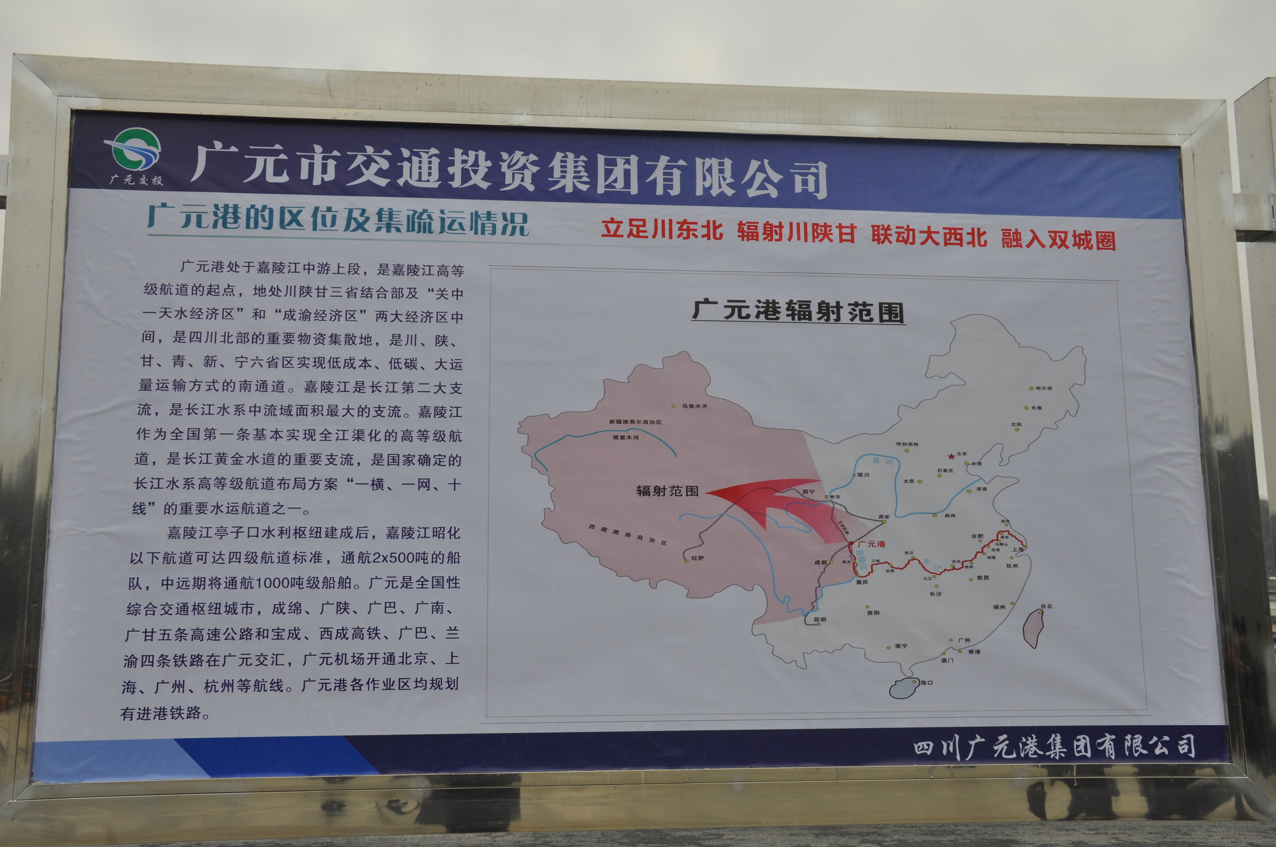 廣元港立足川東北、聯(lián)動(dòng)川甘陜、輻射大西北、融入雙城圈,為廣元市、川東北和甘肅、陜西等廣大西北地區,融入西部陸海新通道、海上絲綢之路經(jīng)濟帶、成渝雙城經(jīng)濟圈、長(cháng)江經(jīng)濟帶提供了平臺支撐,是廣元毗鄰地區和西北地區客商投資興業(yè)的橋梁和紐帶。