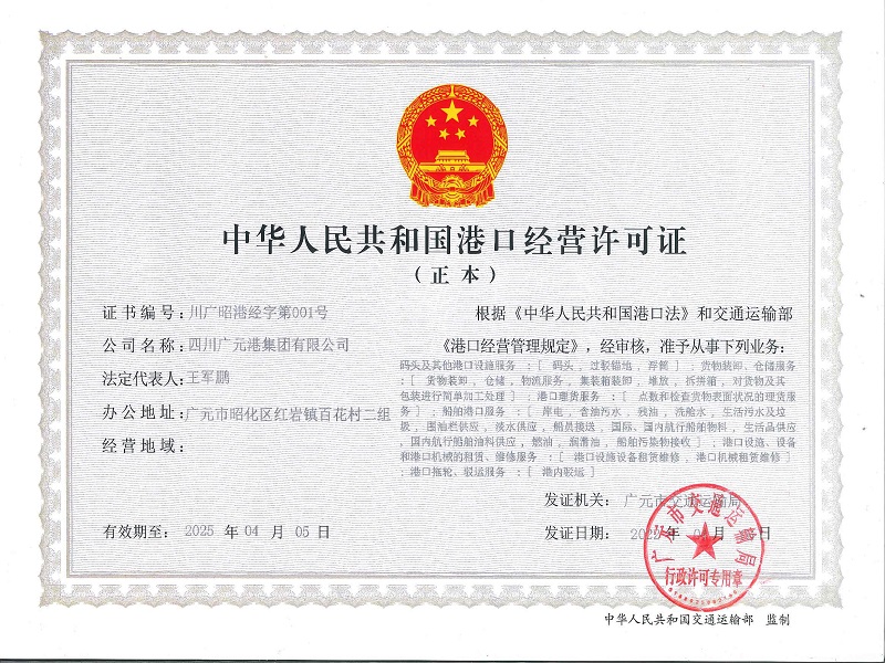廣元港昭化港區成功取得港口經(jīng)營(yíng)許可證