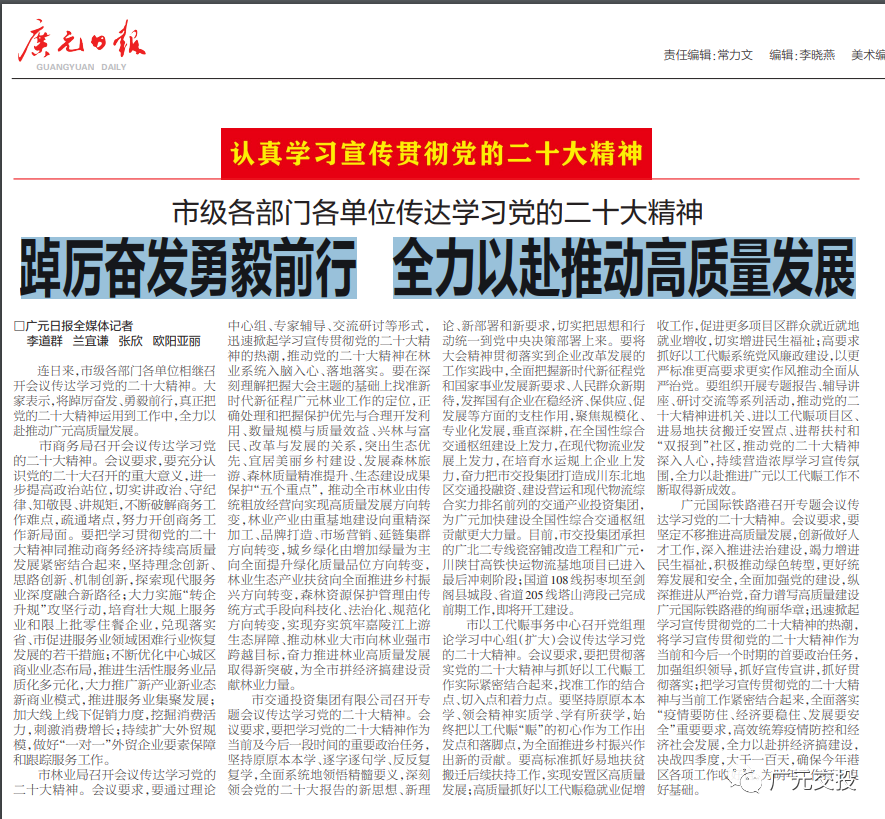 認真學(xué)習宣傳貫徹黨的二十大精神:踔厲奮發(fā)勇毅前行 全力以赴推動(dòng)高質(zhì)量發(fā)展